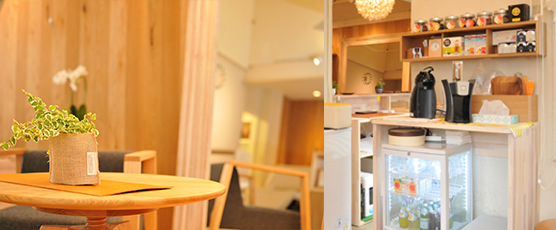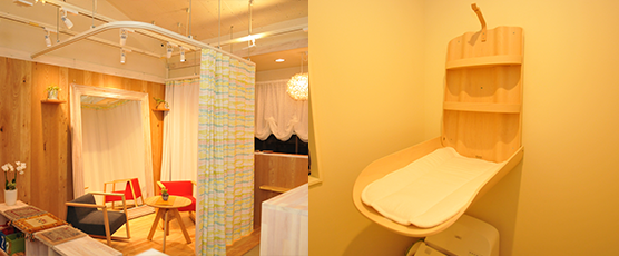 キッズスペース、授乳スペース、おむつ替え台、親子カット用椅子などの設備も充実させています。